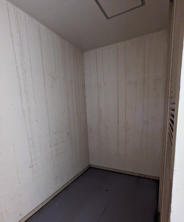 こちらは、使われていない間に壁が汚れたり、色があせたりしており、展示をするならば壁を塗り直さなければ…となっています。