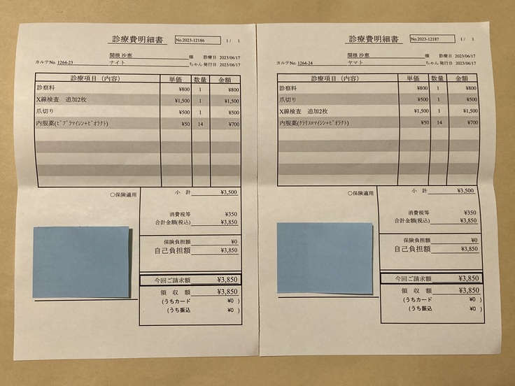 ヤマトは「悪いながらに良くなっている」と言われました。ナイトは「肺炎・漏斗胸ともに少しずつ良くなってきている」と言われました。ヤマトはまだまだ心配ですが、2匹ともこれからも内服を頑張り、週1回通院していこうと思います。