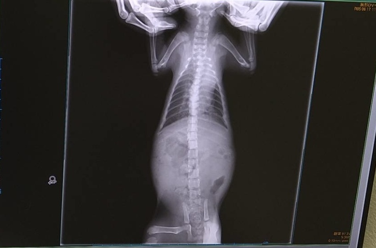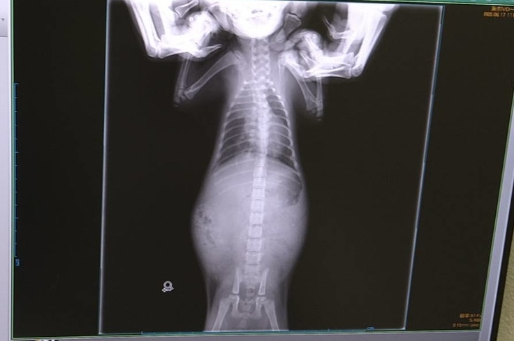 肺炎と漏斗胸の経過観察のため、レントゲンを撮ってもらいました。