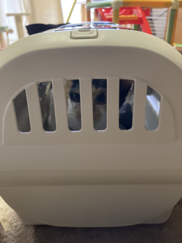 ナイトとヤマトの母猫ですが、ずっとのお家へトライアルに出発しました。先住猫ちゃんとワンちゃんが1匹ずついるお家なので、その子たちとの相性が良ければ正式譲渡となります。里親さんは母猫のために新しいケージやキャリー、トイレ、ご飯など多数のものを準備してくださりました。元野良猫であり、心を許してくれるまでに時間がかかることも理解してくれ、笑顔で受け入れてくださりました。このまま幸せにしてもらえるお家の子になってくれると嬉しいです。