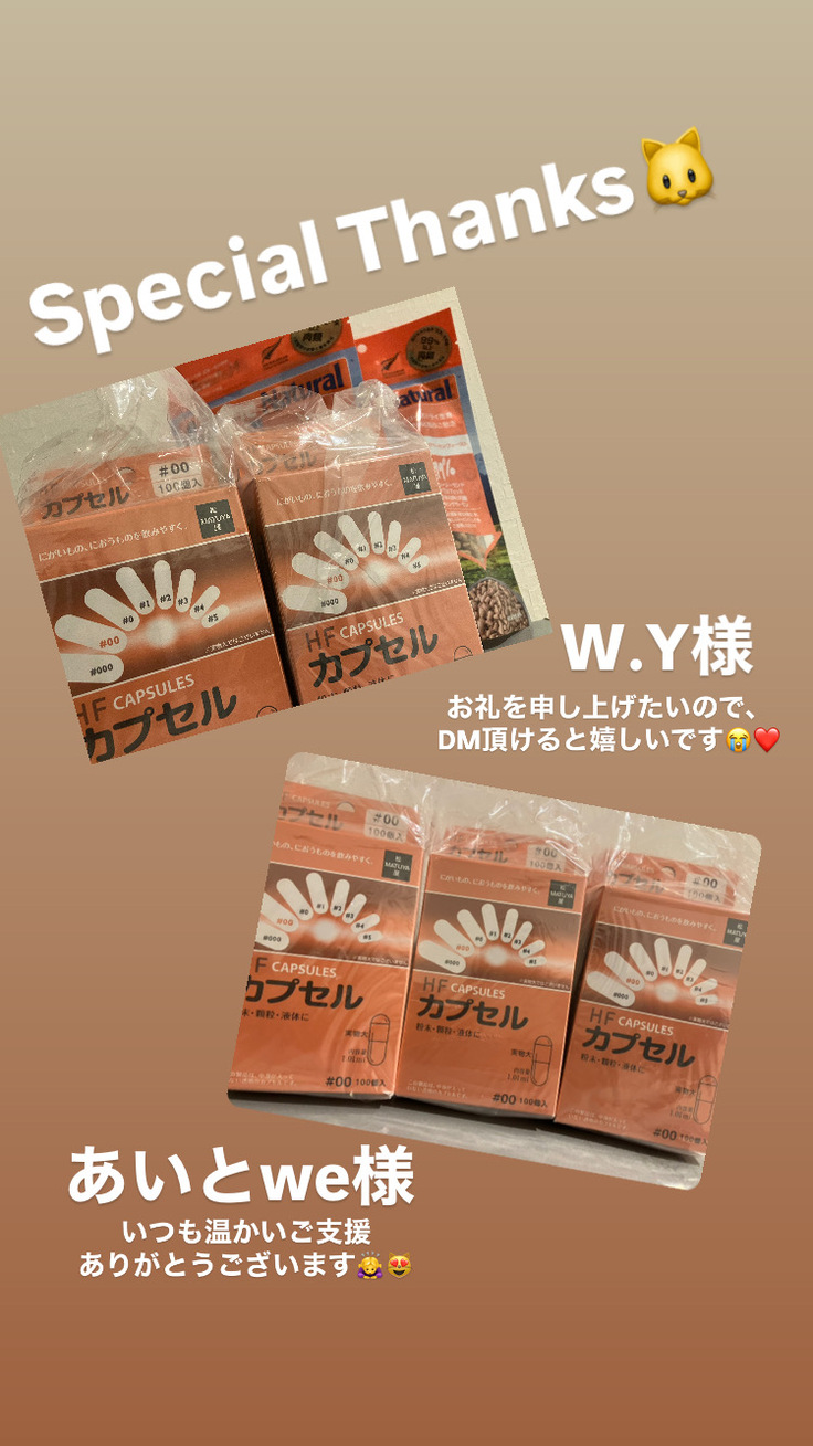 そして、インスタと、前回の活動報告でご支援をお願いしましたカプセルですが、ありがたいことに支援者様がこんなにも沢山送って下さいました。ご飯まで頂き、本当にありがとうございます🙇♀️