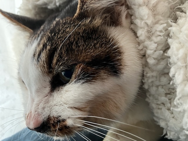 ムチ子は本日1時半に永眠しました。最期は苦しさのあまり絶叫して逝きましたが、その前の6時間は私の両腕の中で抱き締めて温めて「大好きだよ」と沢山伝えることが出来ました。ムチ子の声で駆け付けた弟妹猫も見守る中、静かに眠りにつきました。