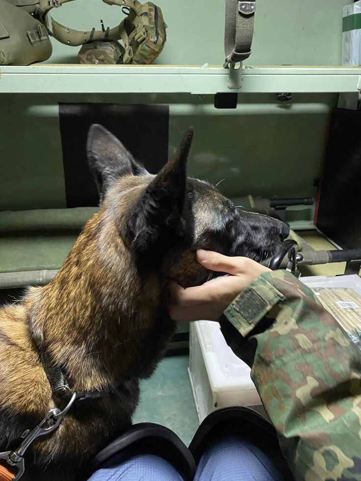 通り抜けた1台は自車で現場まで行き、残り2台に搭乗していた犬1頭と人員3名は先導車とは別の自衛隊車両に乗せていただき現場入りしました。