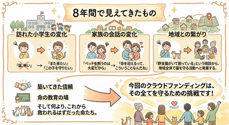 「猫、怖い」と言っていた子どもが、帰るときには「また来たい」「この子を守りたい」と言ってくれる。