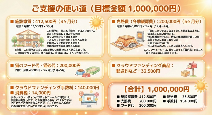 装飾やPRのためではなく、猫たちの命と、この場所を守るための、ギリギリの金額です。