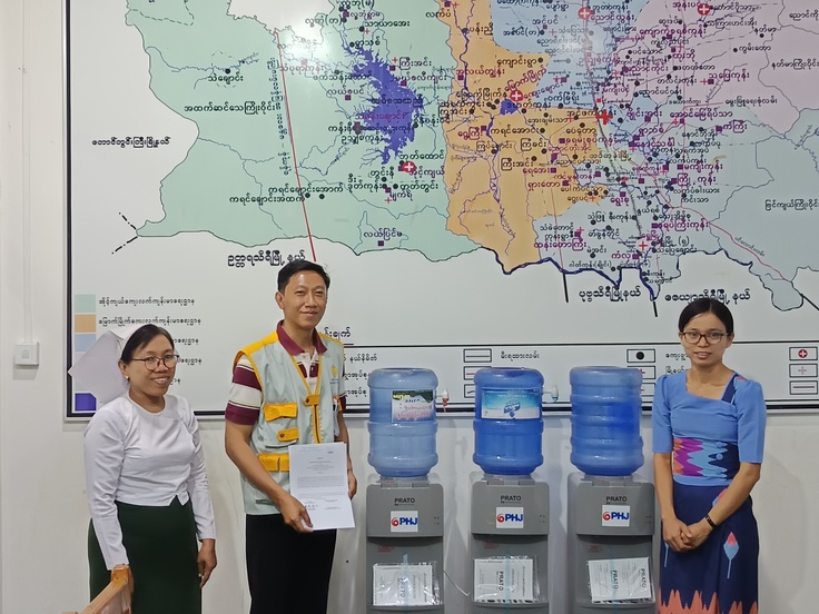 このようなミャンマーでの文化的な背景とニーズを踏まえて、温かい水と冷たい水を供給できるウォーターサーバーを供与することとしました(ウォーターサーバーは電動式。各病院では電気の供給は安定しており、万が一の停電時でも、常温の水は供給可能です)。