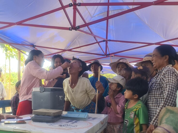 郡保健局からの応援職員が加わり、ヘルスアシスタント、婦人保健訪問員、助産師、公衆衛生スーパーバイザーなど7人の医療者によって、一般外来(15人)を再開すると共に、今後、流行する恐れのある下痢やコレラの予防啓発(365人)と対象者への経口コレラワクチンの接種(194人)や、マラリアやデング熱の感染を予防するための蚊帳の緊急配布(475人)などを行いました。