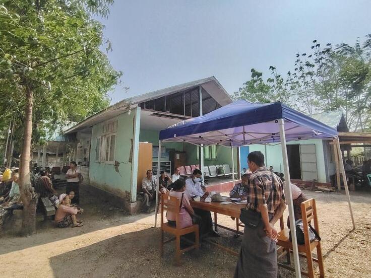 タッコン郡のシュエ・ミョー地域保健センターは、地震の影響で複数の建物の一部が崩壊しました。敷地内や建物内に崩壊した壁や窓ガラスなどの瓦礫が散乱し、また、余震が続く中でさらなる崩壊の恐れがあるため、保健サービスの提供を一時停止せざるを得ませんでした。
