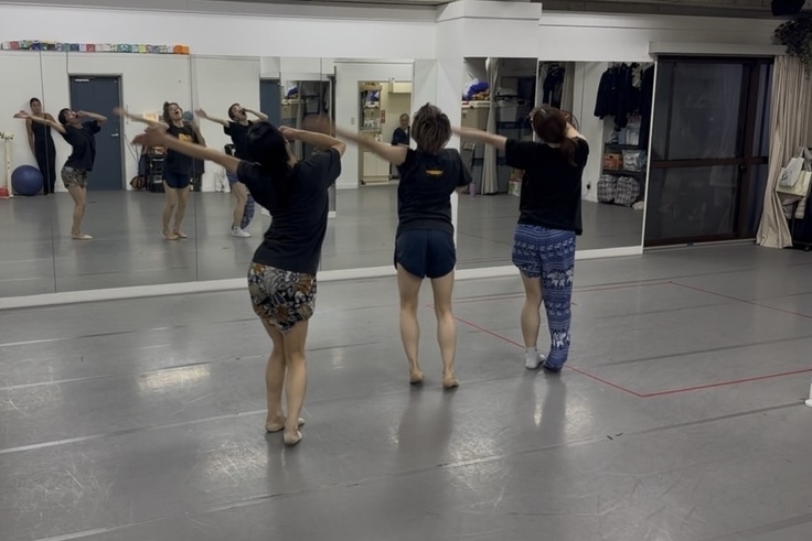 アレグロは3人で踊ります。優秀な若者と同期に追いつけるよう、心の中はこの夏の暑さに負けない熱と大量の汗でいっぱいです。