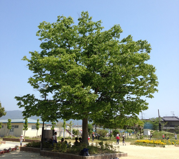(震災後見事に復活した石巻市内の学校にあるシンボルツリー ケヤキ)