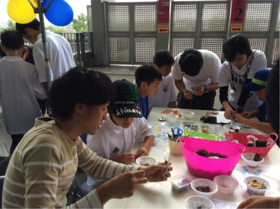 6月に開催したワークショップには、2日間で延べおよそ100名の方にご来場いただき、56個の手作りチャームを作成しました。実際にこのワークショップに参加をされた方からは、その他に「ボールの構造がわかったのと、作る楽しみが味わえて楽しかった。」「いろいろなパーツを選びながら、子どもと一緒に楽しく作成できた。」との声をいただいています。