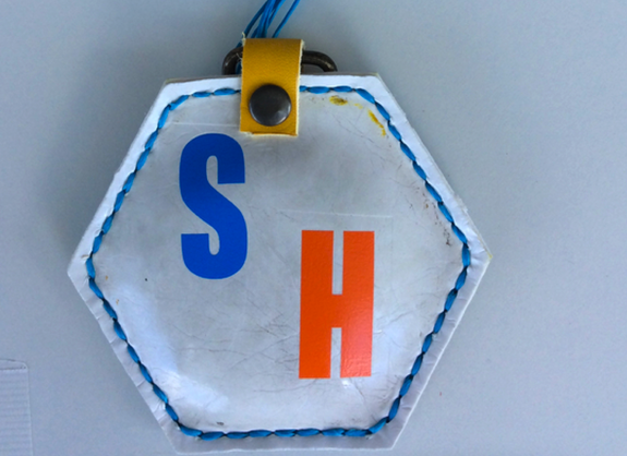 E.支援者様がお持ちのパンクしたボール1つから、ご希望のイニシャルもしくは番号を入れたチャーム