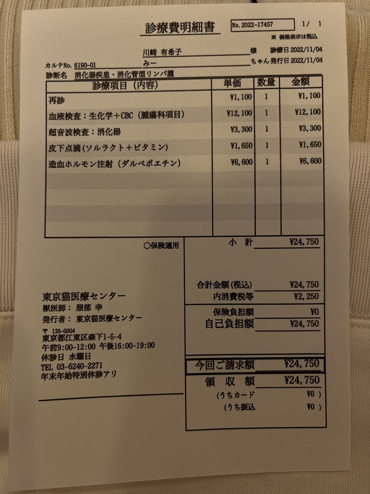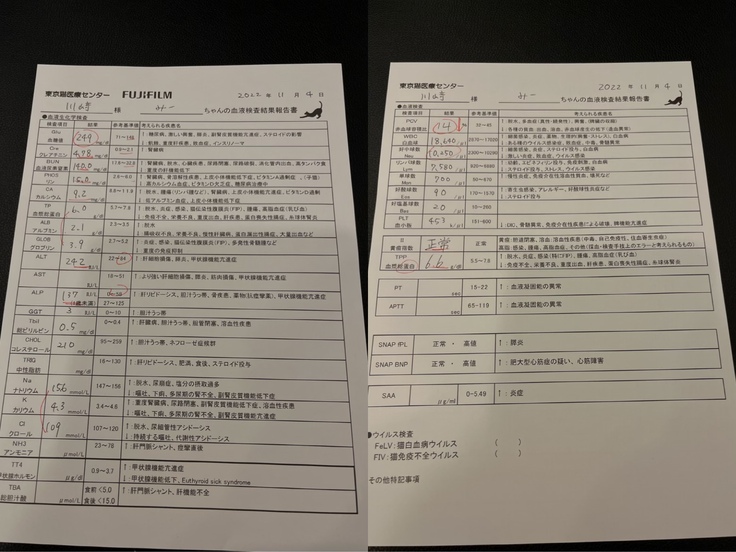 今日前倒しで、エコーと血液検査もしてもらいました。