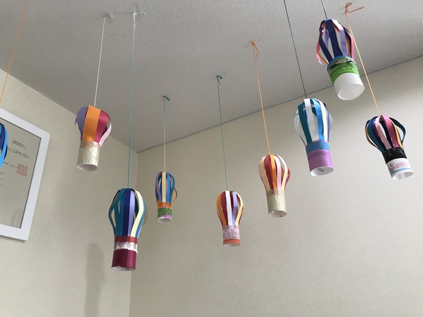 明日に控えた、熱気球搭乗体験への思いを、子ども達に表現してもらいました。