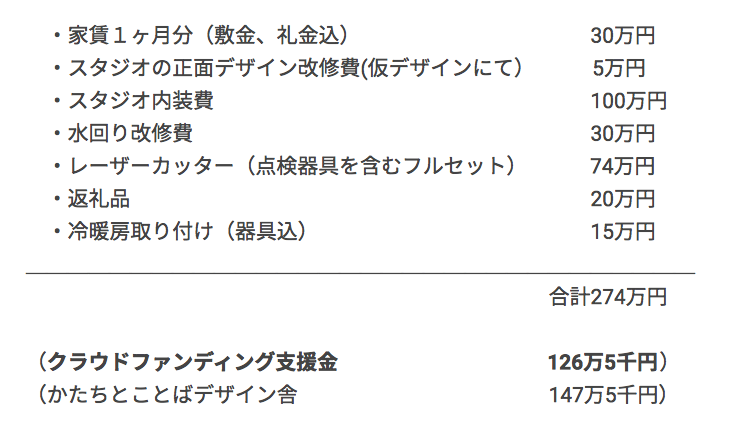 支援金126万5千円に関しましては全額、以下の費用に当てさせていただきました。ご支援いただいた皆様ありがとうございます。改めてお礼申しあげます。