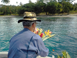 ・慰霊…ソロモン海で、日の丸と旭日旗(軍艦旗)とソロモンの国旗を掲げ慰霊