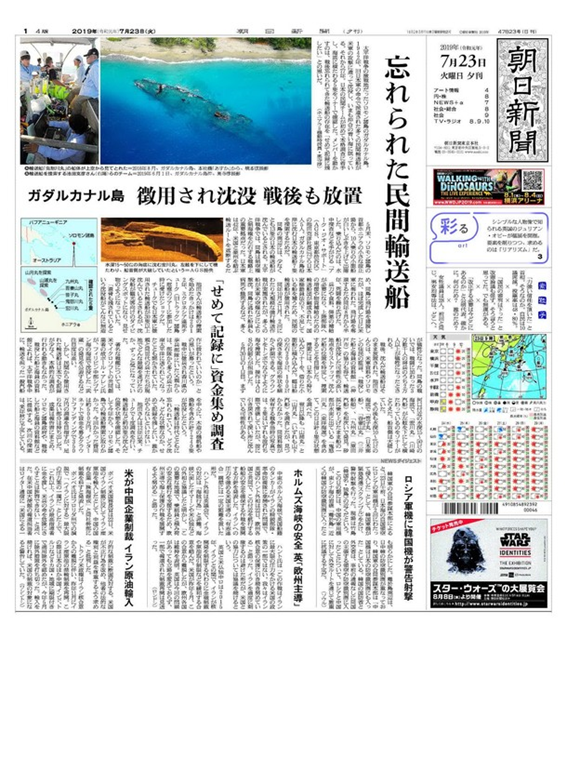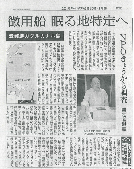 皆様からの多大なご支援により、ガダルカナル島沖に沈む、戦没輸送船の慰霊と探索を実行することが出来ました。