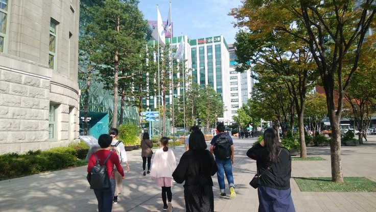 ソウル市役所 まるで博物館・美術館のような素敵な建物でした! 省エネの効果もある建物はソウル市民にとっての憩いの場になっていました!