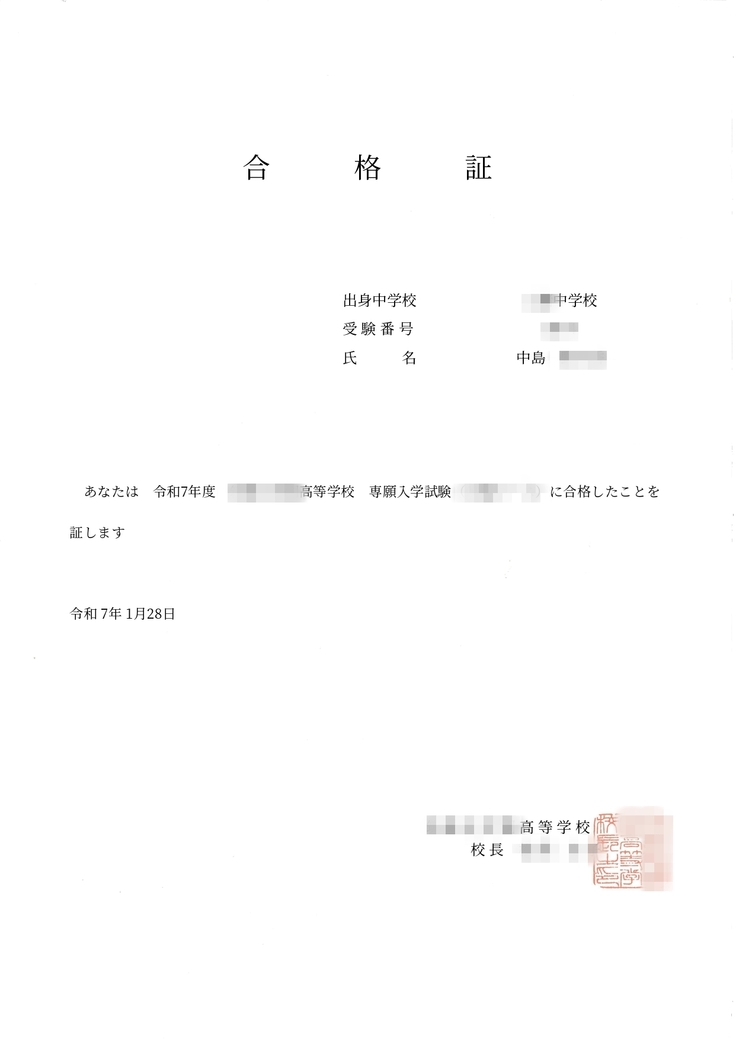ご支援くださった皆様へのご報告が大変遅くなりましたが、この度娘は無事に第一志望の高校に合格することができました。