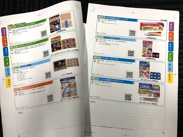 只今制作中の『クスリ早見帖2019年版』には、外用薬(点眼薬、点鼻薬、貼り薬、塗り薬など)やかぜ薬、解熱鎮痛薬の市販薬製品およそ120製品を掲載します。