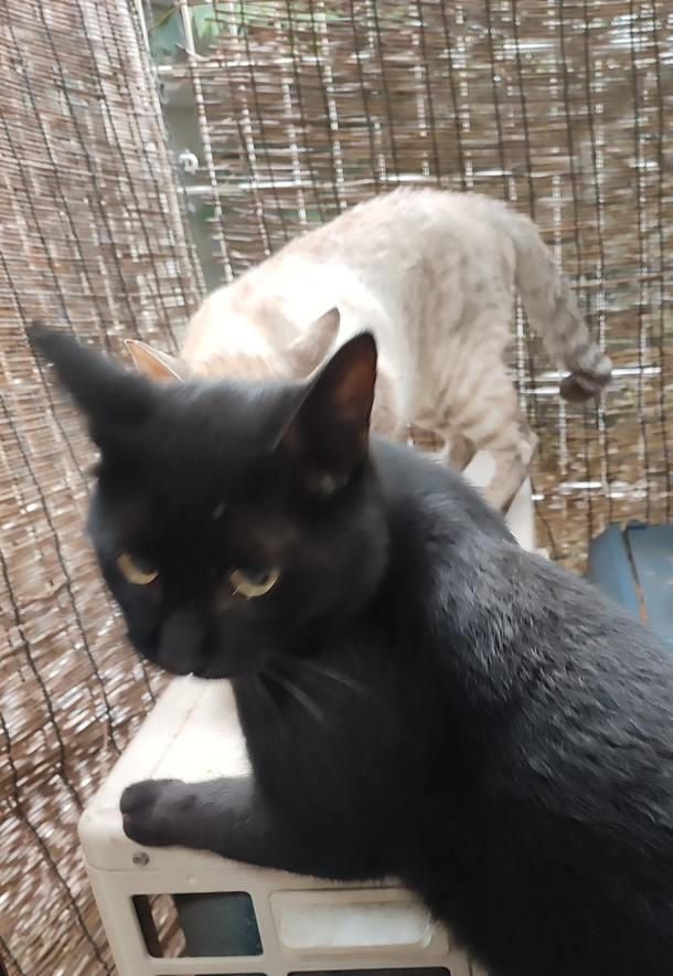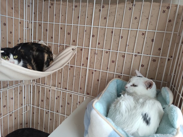 リターンせずに里親さん探しのため、家猫修行中の三毛ちゃん。