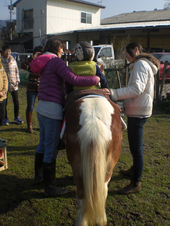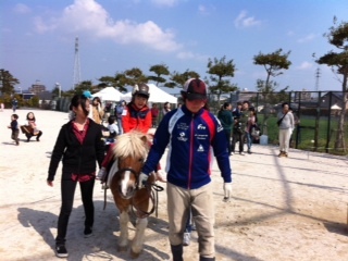 今年3月には糸島市のグラウンドをお借りし、セラピーで活躍してくれているポニーのギンガを連れていき、初めてのお子さんも無事体験頂くことができました。中には、障がいが重度であるため日頃は外にでる機会が少ないお子さんもおられましたが、馬の上では初めてにも関わらず自然と笑顔となる姿を見て、ご両親もほほ笑んでおられる姿にこちらが癒される機会となりました。