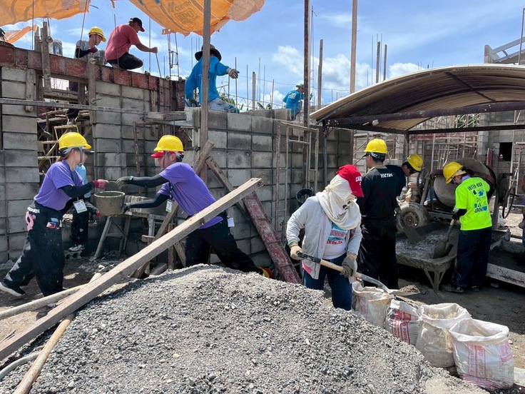 8/16から引き続き、8時半頃から16時まで現地の方々とワークを行いました!壁を共有すると呼ばれる形式のお家になっていて、お家に入られる予定のHPさんご家庭同士は親戚とのことで、ご家族とメンバーと現地の大工さんみんなで作業を進めています。8/18からは、2階の部分や角の柱部分にマサを流し込む作業が始まりました。2階から柱部分にマサを流し込むためマサをバケツリレーによって運びました。マサを作成する場所から2階までに距離があるため現地の方とも協力してマサを運びました。その際にHPさんとお話しする機会もあったため仲良くなれたメンバーもいました!