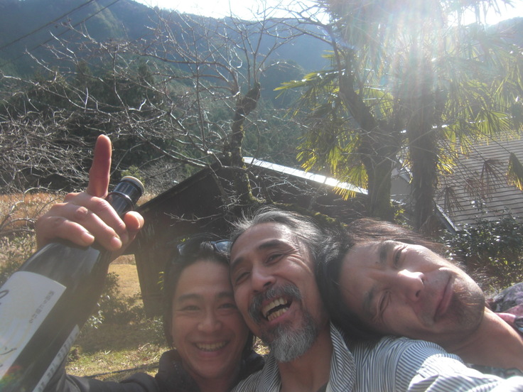 熊野にいる仲間のしょう太が「キッチンで使える昔のタイル張りのシンクがある、食堂に使える木材も結構ある。」とずいぶん前から聞いていて、でもなかなか遠くて行く機会がなかった。しかし今年中には行きたいと思っていたので思い切って行くことにした。あの龍ちゃんも一緒に・・・しょう太の仕事が夜勤なので前日の夜出発してもちろん下道で行った。途中伊勢で仮眠(まだいろいろあったけど長くなるので省くぜ!)して次の朝10時に熊野の道の駅で待ち合わせした。しょう太の家は山の中で周りに人は住んでいない、風光明美なすばらしい所だった。山の幸はもちろん、海も近いので魚も新鮮でその日は百円で買ったマグロのアラの唐揚げをご馳走してくれた。滅茶苦茶うまかったぜ!おいらだけだったら泊って行きたかったけど龍ちゃんが明日仕事で「十六時までに帰る」と無理難題を言い出したので詰めるだけの荷を積んで、またの再開を約束して帰路についた。(帰りもいろいろあったがあまりにも面白すぎて言葉に出来ないので省くぜ!)しょう太はまだ三十代でルックスはジャニーズでも通用する爽やかさで、とにかく第一印象は目がキラキラと輝いている(ホントだぜ!)こんな人間が現実にいたのかと、驚いたものだった。性格もやさしくなんでも人にあげちゃう、モノに依存してないのかな、と思える。子どもの頃はいろいろとあったみたいで苦労したのかな。だから今はものすごく魅力的で生きるちからが漲ってる男だ。おいらはそんなしょう太が大好きだぜ!子ども食堂の事もものすごく賛同してくれた。ありがとう!愛してるぜ!(写真は向かって左からしょう太、おいら、龍ちゃん)