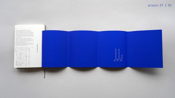 「最小限のクローゼット」をテーマに一つひとつ丁寧に作られる『27』の洋服には、生産をはじめとする商品に携わるたくさんの人の想いが込められています。その想いや考えを伝えるために「読む洋服」としてのコンセプトブックを、一つの商品につき毎号(全27号)発行することに決めました。このコンセプトブックは、鶴田 啓が文章を、宮添浩司がブックデザインを、藤木洋介が編集を担います。ファッションを言葉で表現することに挑戦し続ける鶴田と、様々なジャンルの本を丁寧に手掛けてきた宮添、そしてキュレーターとして多角的な視点と経験を持つ藤木の3者が、洋服という“物”ではないかたちで『27』の内側にある“何か”を表現すべく製作します。