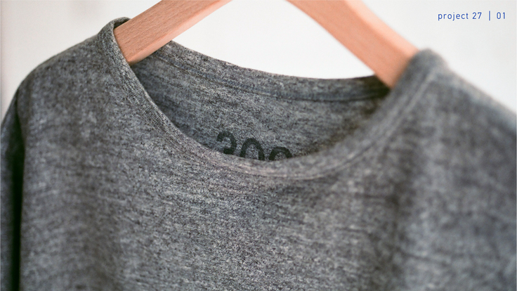 2020年夏に立ち上げたファッション・プロジェクト『27』(*1)。READYFORで発表したVol.01<27-01 / 杢Tシャツ>は、リリース開始直後より国内外から大きな反響をいただき、目標設定額(生産枚数)を遥かに上回るご注文を承りました。販売受付終了後、細部にわたる仕様の確認と修正を繰り返したのち、パッケージデザインや発送手続きにも心を込めて、今年1月にはすべてのお客様に商品をお届けすることができました。ご購入くださったみなさまに、改めて心より御礼申し上げます。ありがとうございました。