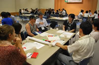 まちづくりを始めたばかりの方やこれから始める方など6組の方々に、まちづくりに対する思いを語っていただき、別府版カードゲームについてグループ内で意見交換を行いました。