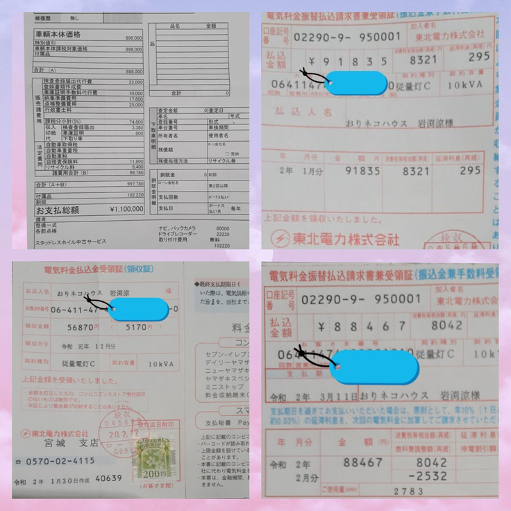 ◎車の購入費の残金を光熱費に充てさせて頂きました。