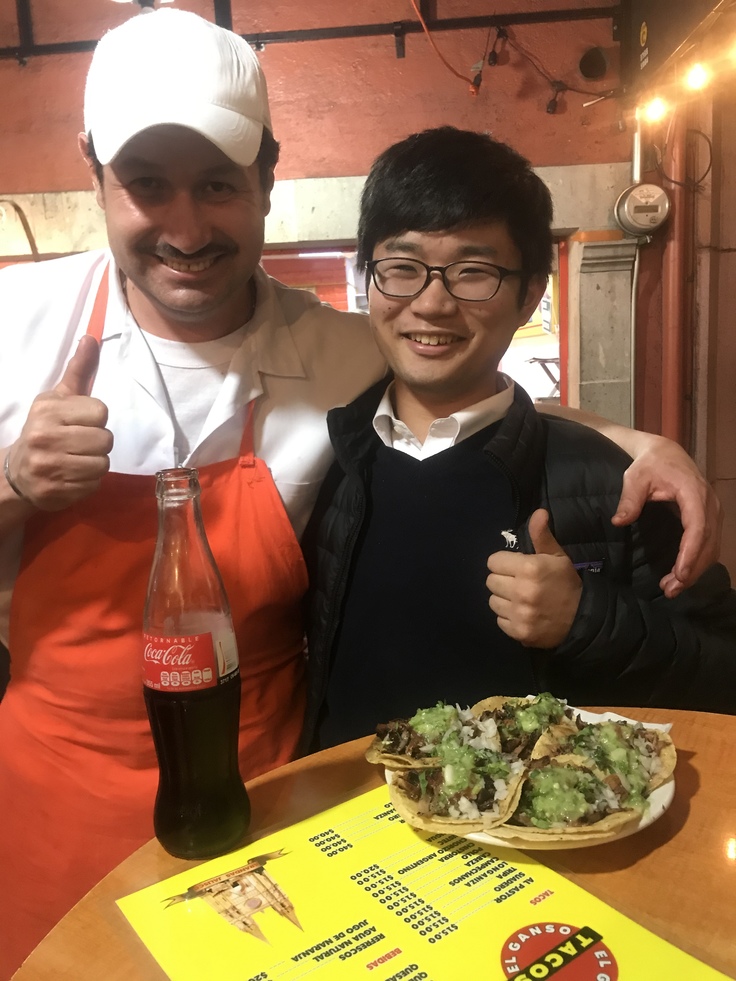 週に一回ほど、行かせていただいているタコス屋さんで、ここのパストールというタコスがとても美味しいです!一つ当たり15ペソ(86円)です!