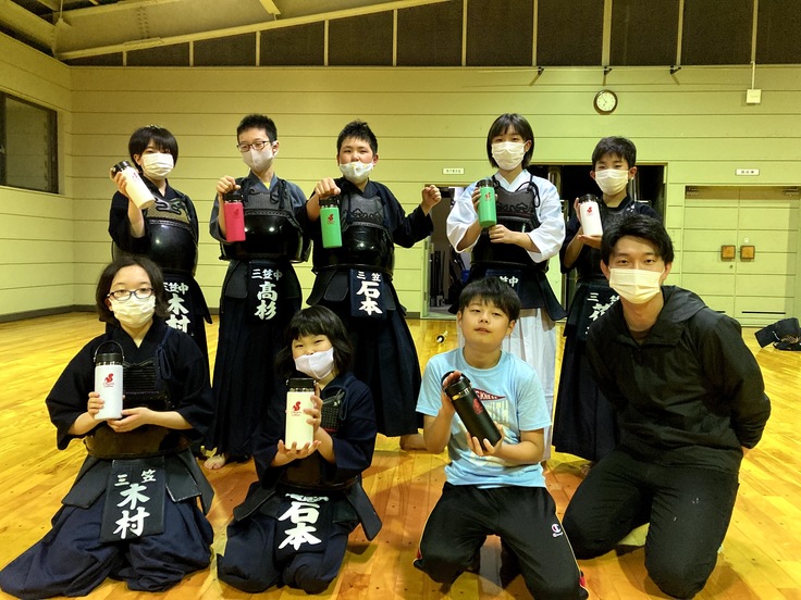 皆様からいただいた支援の返礼品ですが、三笠市内の剣道少年団の活動が再開し、その団体にボトルをプレゼントした時点で、全て送付が完了となりました。