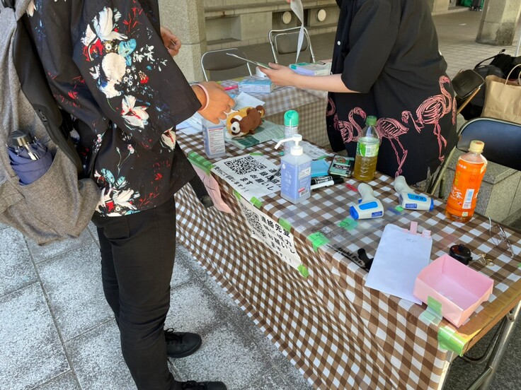 受付の様子。当日は全関係者に検温と緊急連絡先の登録にご協力いただきました。