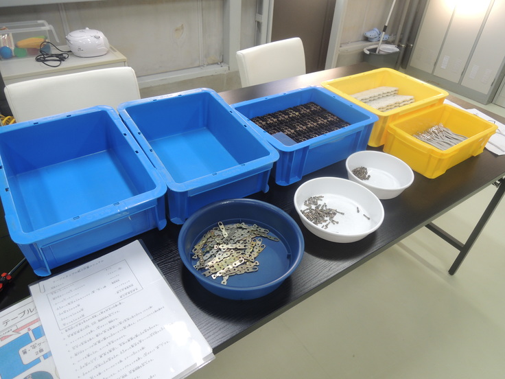 マニュアルを見ながら必要なものを作業棚から取ります。