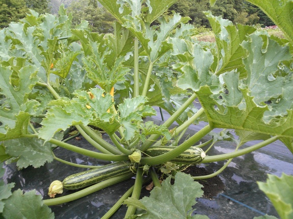 ズッキーニは非常に生育が旺盛なのですが、雨や加湿には弱いです。石徹白は割と降水量は多いほうだと思いますが、梅雨時はやはりそれまであった勢いは衰えてしまい、1週間全くとれなうなる時期もなんどかあります。特に昨年の8月は毎日のように雨だったので収獲量も激減。かなりのダメージを受けました。