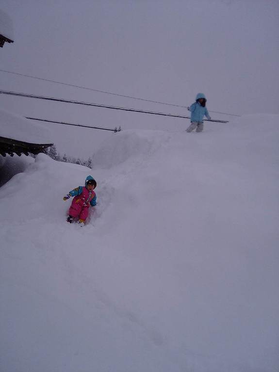 2005年12月24日。この年の12月は記録的な大雪に見舞われ、岐阜県でも農業施設に甚大な損害が出ました。石徹白でも在所にあるビニールハウスのほとんどが、骨組みだけになっていたにも関わらず潰れてしまいました。写真に見えるのはモチロン家の1階部分の屋根です。今年はこの時よりさらに降っています。