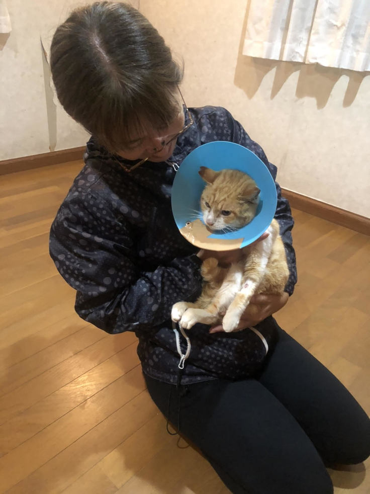 ねこハウスから保護してきて、初めて包帯を替えるのに