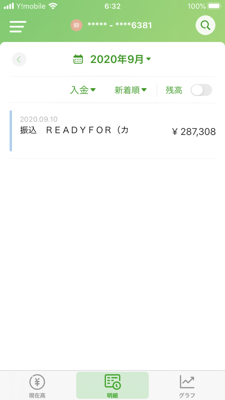 ご支援金がREADY FOR様から入金がございましたことを