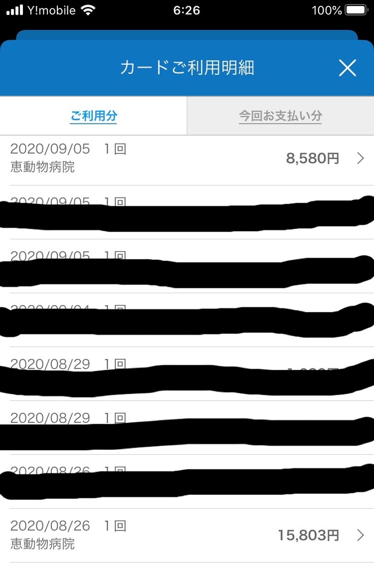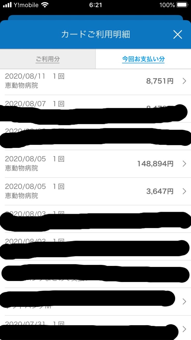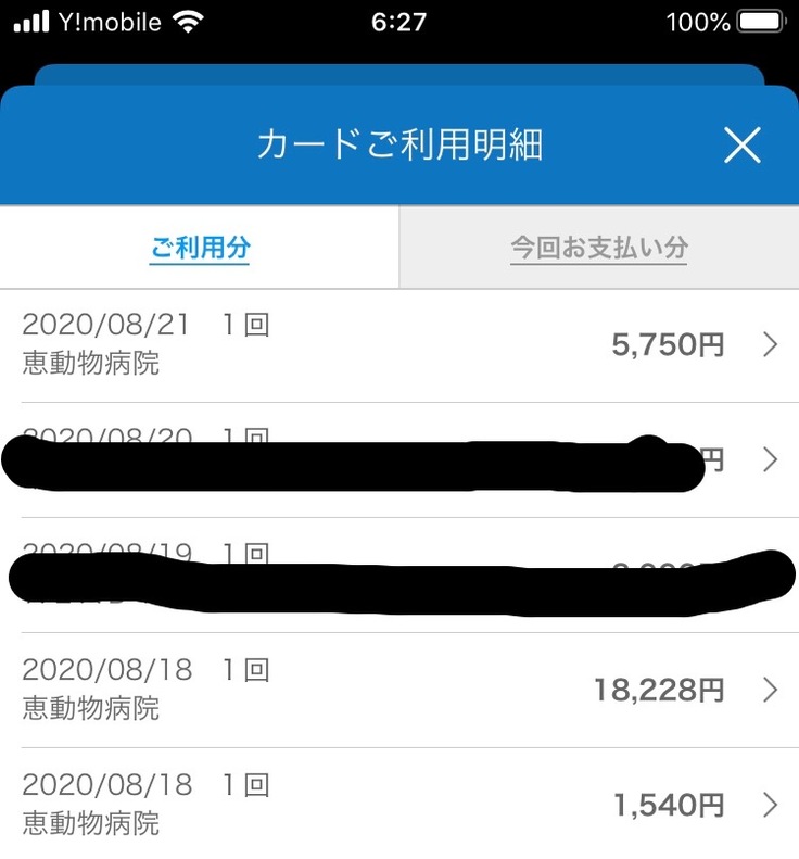 治療費明細分: ¥271,193 (カード決済)
