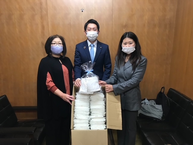 浅野正樹市議会議員様にマスク2400枚をお渡しいたしました。