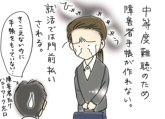 「中度難聴なので、障害者手帳がもらえなく、就活でも門限払いです・・」という回答がありました。