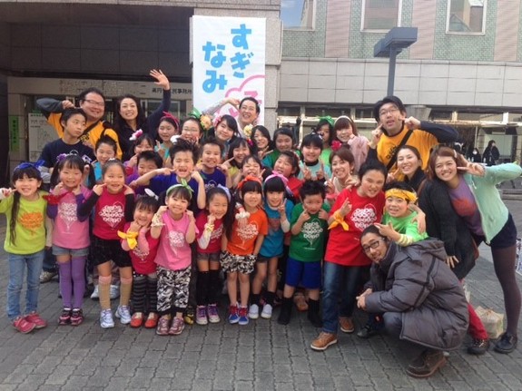 そして、同じく昨年の舞台後、杉並で誕生した「トモダチプロジェクト」。こちらは、ダンス、歌を中心に、南相馬との交流の継続を目的にした団体として杉並区に根を下ろしました。4歳から小学6年生までのキャストが20名以上登録され、 区内の小学校や区民センターを中心に毎週、練習を重ね、昨年秋からは、南相馬のキャスト達と一緒に南相馬や福島市のイベントに何度も出演し、「みんなのうた」や「トモダチ盆唄」(相馬盆唄kidsバージョン)を歌い踊ってきました。