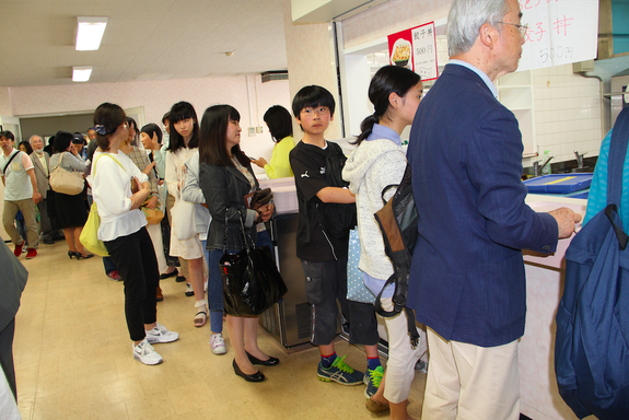 早朝から準備しましたが、大好評で行列となり、厨房は大忙し。当初予定していた100食はすぐに売り切れ急遽、販売用の冷凍餃子を焼いて対応しました。