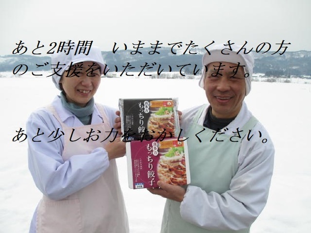 達成しましたら、私たちの少しばかりの御礼として喜多方もっちり餃子10個や新米1kを皆様へプレゼントいたします。