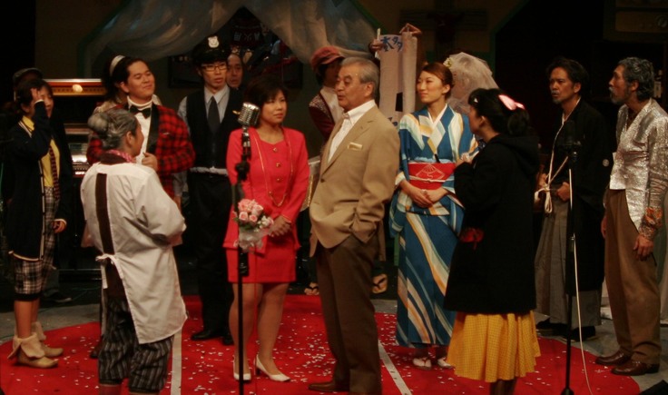 お芝居をみてみたいな~、という老人達の頼みに、演じてみせる一座の面々。
