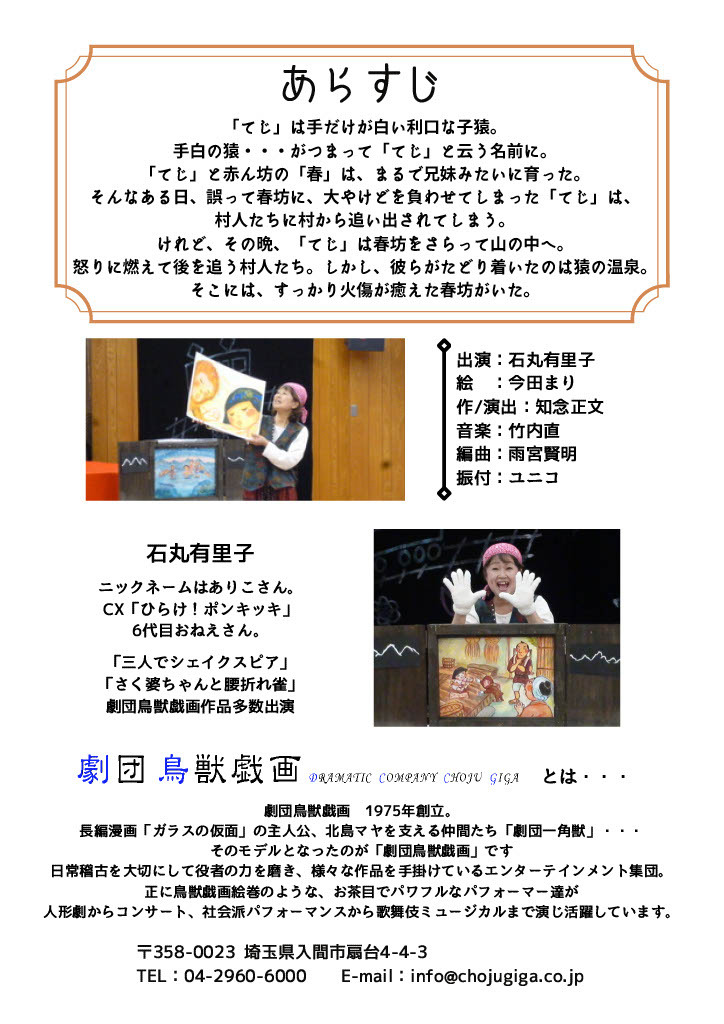 25日(日)の11時からありこさんの紙芝居ミュージカル「てじ」を観て