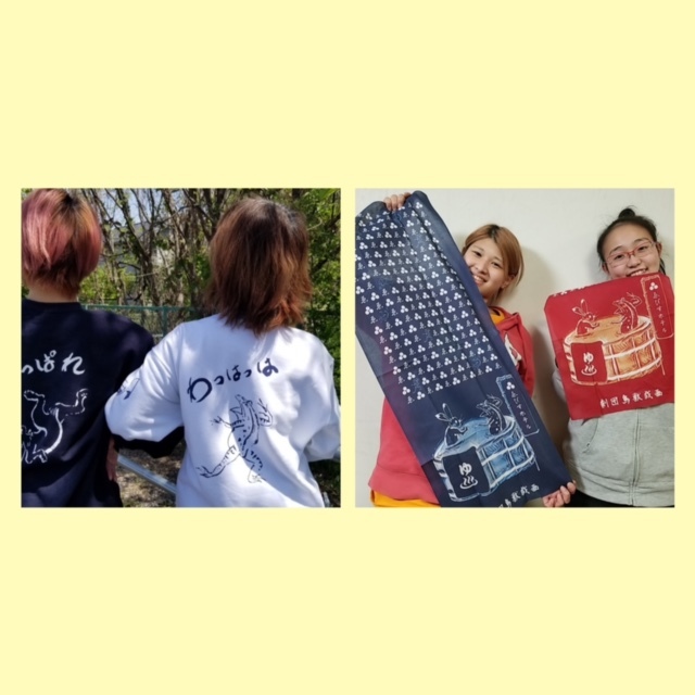 写真は出来立てホヤホヤゑびすホテル手拭いと鳥獣戯画トレーナーです!