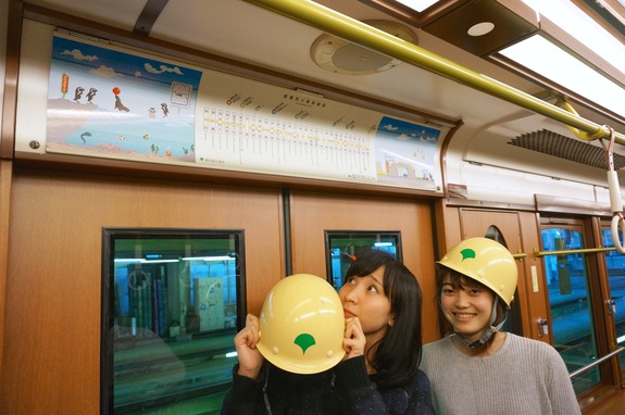 実際に都電の中に貼られた広告を見ると、私たちの予想以上の可愛い仕上がりで、感無量の思いです。